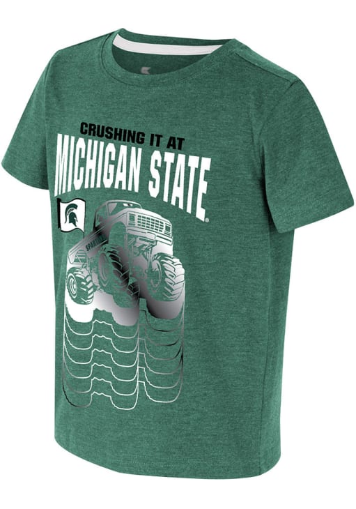 Product Details Product Details Second color neck tapeMonster truck graphicPoly-cotton blendScreen print graphicShort sleeve teePerfect for any young sports fan!52% COTTON / 48% POLYESTERImport, Domestic Officially Licensed Your future Spartans will be ready to cheer in this Toddler Michigan State Spartans Green Short Sleeve Tee. This Michigan State Spartans T-Shirt features a screenprint team graphic.
