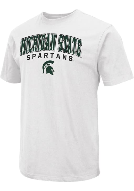 Display your team spirit with this remarkable Michigan State Spartans Colosseum White Arch Name Mascot Version Short Sleeve T Shirt! The MSU Short Sleeve Tee showcases a screen printed arched team name on center chest that truly sets it apart. Stand out from the crowd and proudly declare your allegiance to the Spartans with this exceptional White MSU T Shirt. Go Spartans!