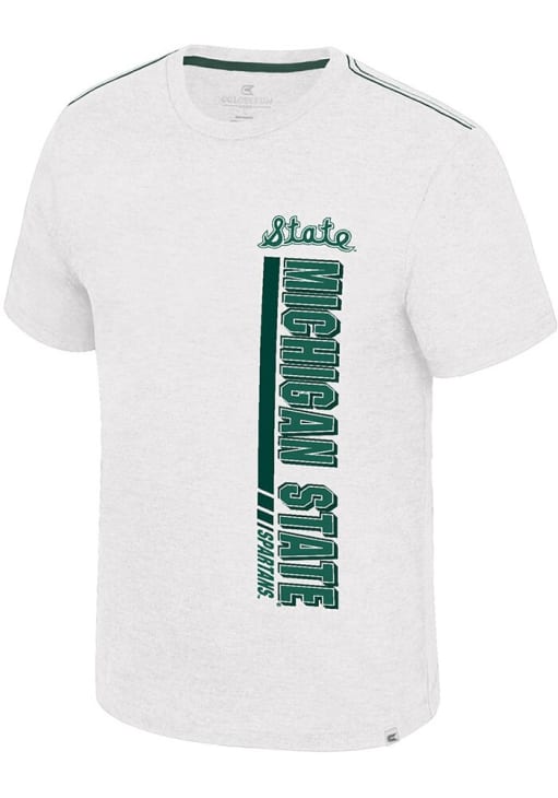 Display your team spirit with this remarkable Michigan State Spartans White Vintage Logo Short Sleeve T Shirt! The MSU Short Sleeve Tee showcases a screenprinted vertical full length logo on front left and small logo on back neck that truly sets it apart. Stand out from the crowd and proudly declare your allegiance to the Spartans with this exceptional White MSU T Shirt. Go Spartans!