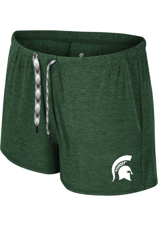 Take your workout to the next level in these Michigan State Spartans Womens Green Dash Shorts! These MSU Shorts are great for any Spartans fan who wants to show off their team spirit during their fitness routine. These Michigan State Spartans Shorts feature a rubberized print team logo on left hip.