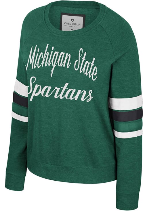 Gear up for the ultimate game day experience with this remarkable Michigan State SpartansWomens Green Poppy Crew Sweatshirt! Designed with the true fan in mind, this Spartans Long Sleeve Sweatshirt features a embroidered team name at center chest. Stay warm and comfortable with this Womens MSU Spartans Crew Sweatshirt.