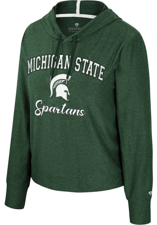 Embrace your Spartans pride and showcase your team spirit with confidence in this Michigan State Spartans Long Sleeve Hoodie! Stay warm and stylish with the MSU Womens Green Skipper Hooded Sweatshirt. Designed with rubberized print team logo and name on center chest, this Spartans Long Sleeve Hoodie is a must-have for dedicated fans.
