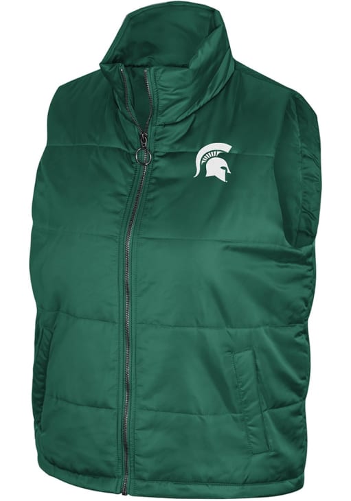 Gear up for the upcoming tailgate with the ultimate Michigan State Spartans Womens Green Vest. Stay warm in this MSU Sylvie Sleeveless Jacket, which features a embroidered team logo on left chest.