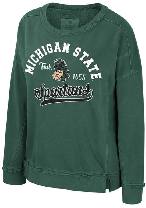 Gear up for the ultimate game day experience with this remarkable Michigan State SpartansWomens Green Wished For Crew Sweatshirt! Designed with the true fan in mind, this Spartans Long Sleeve Sweatshirt features a cross stitch embriodery team name and screen print logo on center chest. Stay warm and comfortable with this Womens MSU Spartans Crew Sweatshirt.