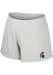 Take your workout to the next level in these Michigan State Spartans Womens Grey Featherington Shorts! These MSU Shorts are great for any Spartans fan who wants to show off their team spirit during their fitness routine. These Michigan State Spartans Shorts feature a Primary logo on left hem.