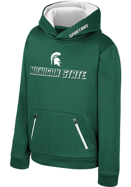 Size Chart for Youth Michigan State Spartans Green Colosseum Fin Long Sleeve Hood
