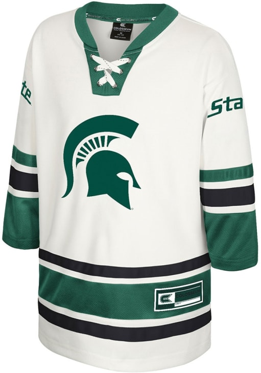 Every MSU fan needs a Youth Green Michigan State Spartans Hockey Jersey! This MSU Jersey features a tackle twill and embroidery. Dress up to match the spirit of Spartans for gameday!