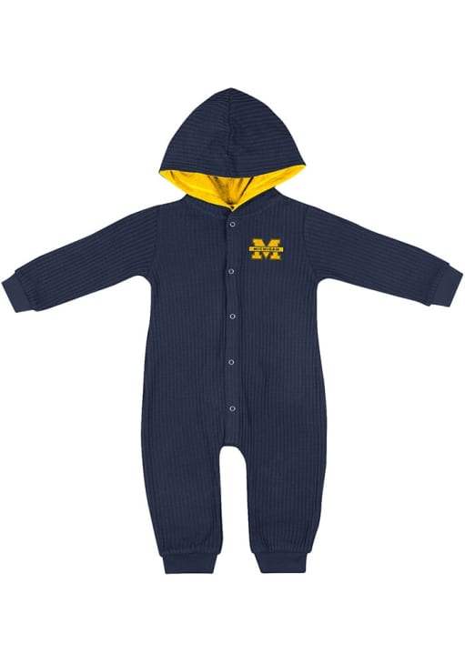 Your little Wolverines fan will look cozy and adorable in this Baby Blue Michigan Wolverines Lumpy Space One Piece! This Michigan Wolverines Romper features a tackle twill and embroidery.