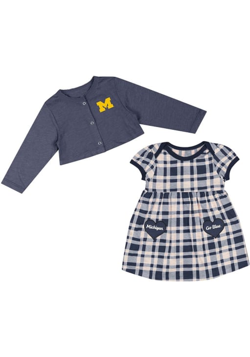 Let your baby's unique style show in this Michigan Wolverines Baby Girls Dress. Featuring a team grahpic, this Blue Wolverines Dress is the perfect way to show off your style and pride for the Michigan Wolverines.