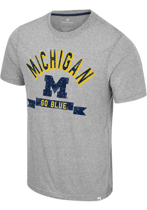 Support your Michigan Wolverines in this Grey Short Sleeve Fashion Tee! This Connor Fashion T Shirt features a distressed washed out print of team name across front chest. Be ready to yell "Go Michigan" when you wear this Michigan Short Sleeve Fashion T Shirt in your favorite stadium or on the street.