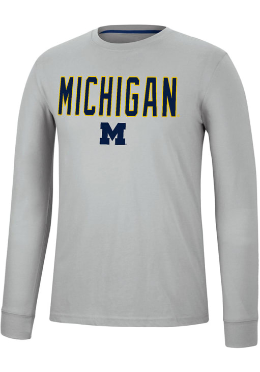 Show your Michigan Wolverines spirit in this Michigan Grey T Shirt! This Michigan Spackler Long Sleeve T Shirt makes a great layer for cooler nights cheering on the Wolverines. Featuring a screen print team graphic on front chest, this Michigan Wolverines Long Sleeve Tee is an essential addition for every fan. Go Michigan!