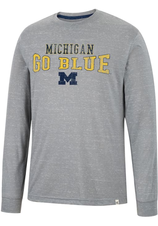 Show your Michigan Wolverines spirit in this Michigan Grey T Shirt! This Michigan Youre In Charge Long Sleeve T Shirt makes a great layer for cooler nights cheering on the Wolverines. Featuring a waterbased screen print of team logo with name on front chest, this Michigan Wolverines Long Sleeve Tee is an essential addition for every fan. Go Michigan!