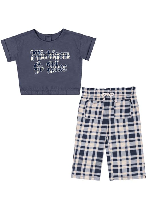 Get your little Michigan Wolverines fan gameday ready with this Blue Infant Girls Top and Bottom Set! This Top and Bottom Set features a plaid applique with satin stitching and is ready to be sported by a little fan.