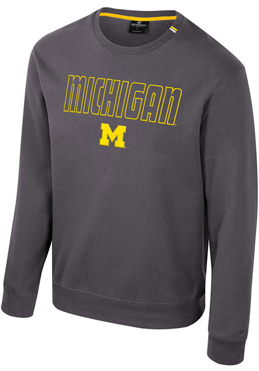 Gear up for the ultimate game day experience with this remarkable Michigan WolverinesMens Charcoal Zion Crew Sweatshirt! Designed with the true fan in mind, this Wolverines Long Sleeve Crew Sweatshirt features a team graphic twill applique on front chest. Stay warm and comfortable with this Mens Michigan Wolverines Crew Sweatshirt.
