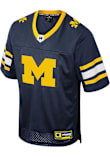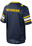 Get in the game with this ultimate Michigan Wolverines Mens Blue Field Time Football Jersey. Wear this Jersey to the upcoming tailgate or game for your Wolverines. With a team logo rubberized print on front chest and shoulders with school name rubberized print on upper back, this Mens Football Jersey is a great way to show your team spirit in style.