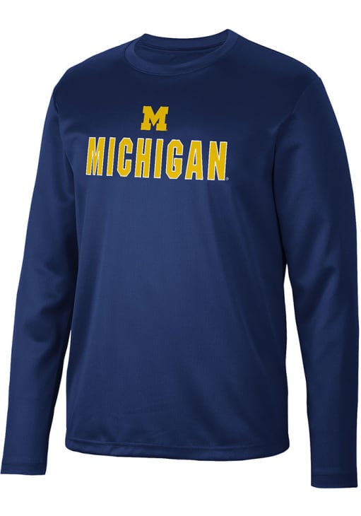 Make a bold statement in this Michigan Wolverines Blue Reed Long Sleeve T-Shirt! This Michigan Long Sleeve Tee features a team graphic on front chest. Go Michigan!