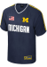 Stand out and showcase your unwavering Michigan pride with confidence in this striking Michigan Wolverines Mens Navy Blue Replica Jersey! Make a statement on gameday with this eye-catching Michigan Wolverines Soccer Jersey, which features a Rubberized team name, logo, and American flag across chest.