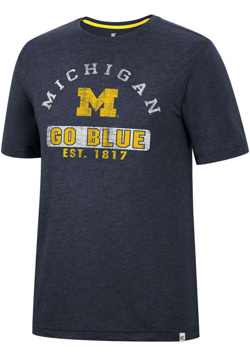 Display your team spirit with this remarkable Michigan Wolverines Colosseum Blue Zen Philospher Short Sleeve T Shirt! The Michigan Short Sleeve Tee showcases a distressed screen print team graphic on front chest that truly sets it apart. Stand out from the crowd and proudly declare your allegiance to the Wolverines with this exceptional Blue Michigan T Shirt. Go Michigan!