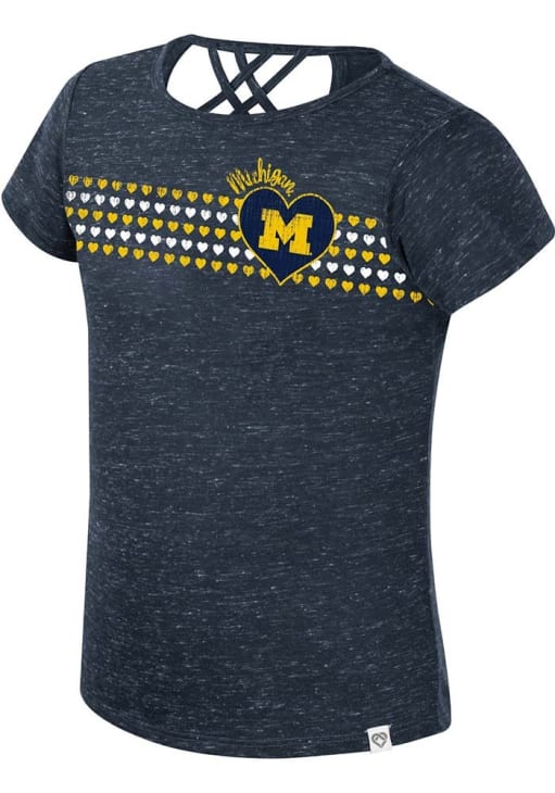 Show your support for Wolverines in this Toddler Girls Blue Michigan Wolverines Short Sleeve Tee! This Star Court Fashion T-Shirt features a screen print graphic center chest that pairs perfect with any wardrobe. Get ready to show pride for your favorite team as you cheer "Go Michigan"