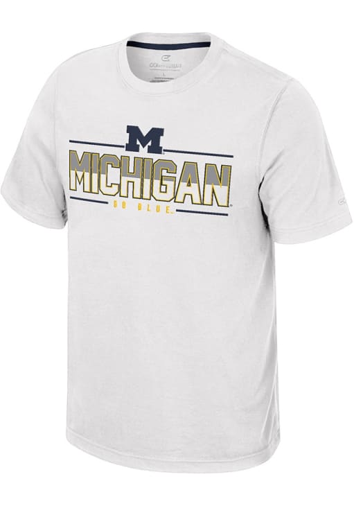 Display your team spirit with this remarkable Michigan Wolverines White Resistance Short Sleeve T Shirt! The Michigan Short Sleeve Tee showcases a screenprint of team graphic across front chest that truly sets it apart. Stand out from the crowd and proudly declare your allegiance to the Wolverines with this exceptional White Michigan T Shirt. Go Michigan!