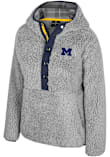 Embrace your Wolverines pride and showcase your team spirit with confidence in this Michigan Wolverines Long Sleeve Hoodie! Stay warm and stylish with the Michigan Womens Grey Matilda 1/2 Zip Hooded Sweatshirt. Designed with embroidered team logo on left chest, this Wolverines Long Sleeve Hoodie is a must-have for dedicated fans.