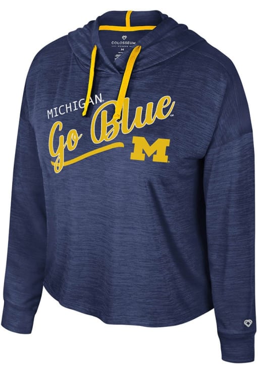 Embrace your Wolverines pride and showcase your team spirit with confidence in this Michigan Wolverines Long Sleeve Hoodie! Stay warm and stylish with the Michigan Womens Blue Marina Hooded Sweatshirt. Designed with screenprint team name and logo on center chest, this Wolverines Long Sleeve Hoodie is a must-have for dedicated fans.