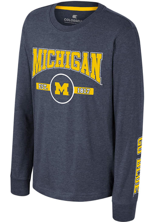 Size Chart for Youth Michigan Wolverines Blue Colosseum Starfighter Long Sleeve T-Shirt
