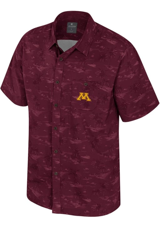 Elevate your style for any occasion with this sophisticated Minnesota Golden Gophers Short Sleeve Dress Shirt! Let your Golden Gophers pride show in this Maroon Atmostphere Button Down Shirt. This Atmostphere Minnesota Dress Shirt is perfect for showing your Golden Gophers pride at the office. Featuring a primary team logo embroidered on front pocket, this Minnesota Golden Gophers Dress Shirt has a subtle touch of fan support.