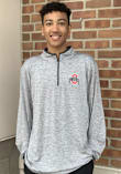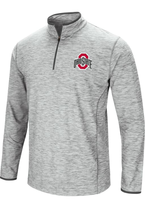 Embrace the warmth and showcase your Buckeyes pride with our Ohio State Buckeyes Long Sleeve Qtr Zip Pullover. This Mens Grey Sprint Long Sleeve Pullover offers a screen print of Ohio State logo on left chest for the perfect combination of comfort and style. Elevate your everyday look with this must-have Ohio State Buckeyes Long Sleeve Qtr Zip Pullover.