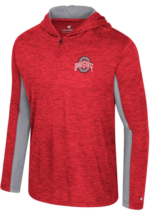 Make a bold statement in this Ohio State Buckeyes Red Always Sunny Hooded Windshirt Long Sleeve Hood! This The Ohio State University Long Sleeve Hoodie features a rubberized logo on left chest. Go Buckeyes!