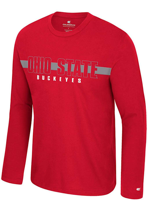 Make a bold statement in this Ohio State Buckeyes Red Bar Long Sleeve T-Shirt! This The Ohio State University Long Sleeve Tee features a screen printed wordmark on center chest and logo on back neck. Go Buckeyes!