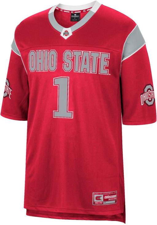 Get in the game with this ultimate Ohio State Buckeyes Mens Red Let Things Happen Football Jersey. Wear this Jersey to the upcoming tailgate or game for your Buckeyes. With a team name and logo in rubberized screen print on front chest, this Mens Football Jersey is a great way to show your team spirit in style.
