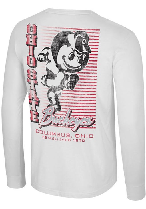 Show your Ohio State Buckeyes spirit in this The Ohio State University White T Shirt! This The Ohio State University Lasso The Moon Long Sleeve T Shirt makes a great layer for cooler nights cheering on the Buckeyes. Featuring a screen printed team graphic on left chest and screen printed team graphic on back, this Ohio State Buckeyes Long Sleeve Tee is an essential addition for every fan. Go Buckeyes!