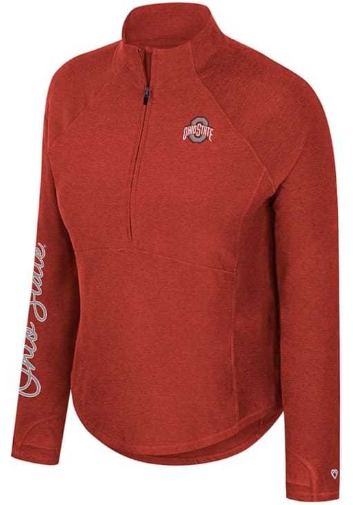 Embrace your Buckeyes spirit with pride in this Ohio State Buckeyes Long Sleeve Qtr Zip. This Womens Red Gravity Long Sleeve Pullover showcases a screen print team logo at left chest. You'll want to wear this Ohio State Buckeyes Long Sleeve Qtr Zip every day.