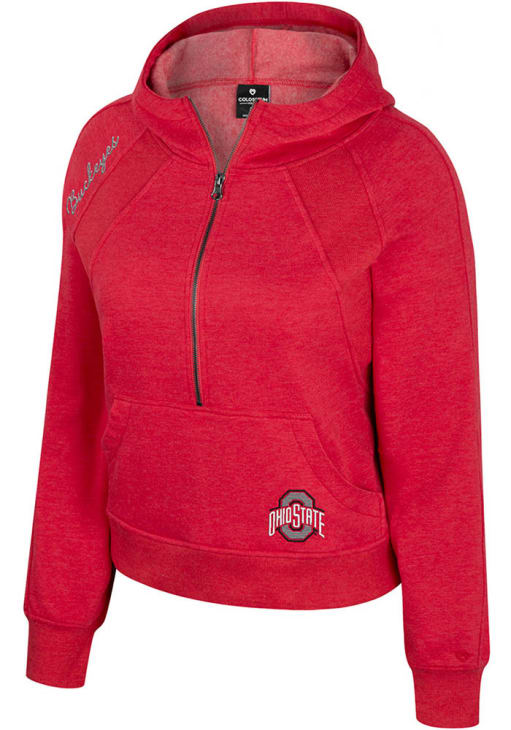Embrace your Buckeyes pride and showcase your team spirit with confidence in this Ohio State Buckeyes Long Sleeve Hoodie! Stay warm and stylish with the The Ohio State University Womens Red Precipice Hooded Sweatshirt. Designed with embroidered team name on left pocket and team name on right shoulder, this Buckeyes Long Sleeve Hoodie is a must-have for dedicated fans.