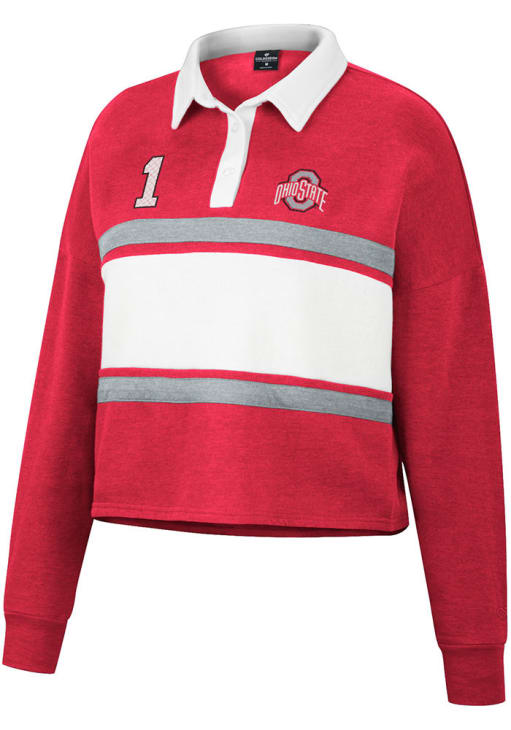 Womens Ohio State Buckeyes Red Colosseum Rugby LS Tee
