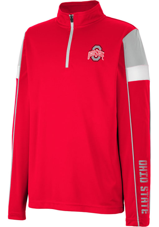 Show your style in this Youth Red Ohio State Buckeyes Screever Quarter Zip! This Long Sleeve Shirt features a rubberized print team graphic on left chest and left sleeve. You'll be cozy and comfortable heading to the game with the Buckeyes Youth The Ohio State University Quarter Zip.