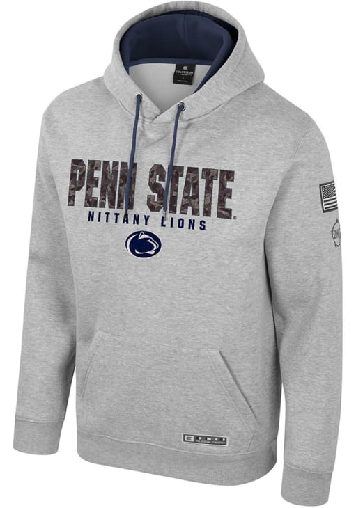 Embrace your Nittany Lions pride and showcase your team spirit with confidence in this Penn State Nittany Lions Long Sleeve Hoodie! Stay warm and stylish with the Penn State Mens Grey OHT Oorah Hooded Sweatshirt. Designed with team name camo applique on front chest and logo embroidered on front chest, this Nittany Lions Long Sleeve Hoodie is a must-have for dedicated fans.