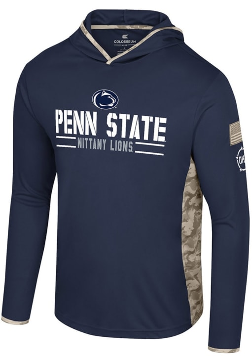 Make a bold statement in this Penn State Nittany Lions Navy Blue OHT Company Long Sleeve Hood! This Penn State Long Sleeve Hoodie features a printed team logo over team name on front chest and printed graphic on right arm. Go Lions!
