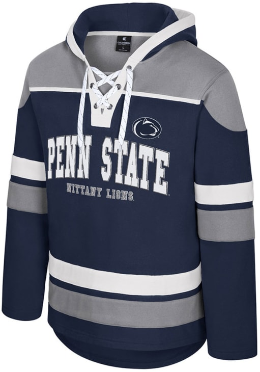 Embrace your Nittany Lions pride and showcase your team spirit with confidence in this Penn State Nittany Lions Long Sleeve Hoodie! Stay warm and stylish with the Penn State Mens Navy Blue Rivalry Hockey Hooded Sweatshirt. Designed with embroidered logo and wordmark center chest, this Nittany Lions Long Sleeve Hoodie is a must-have for dedicated fans.
