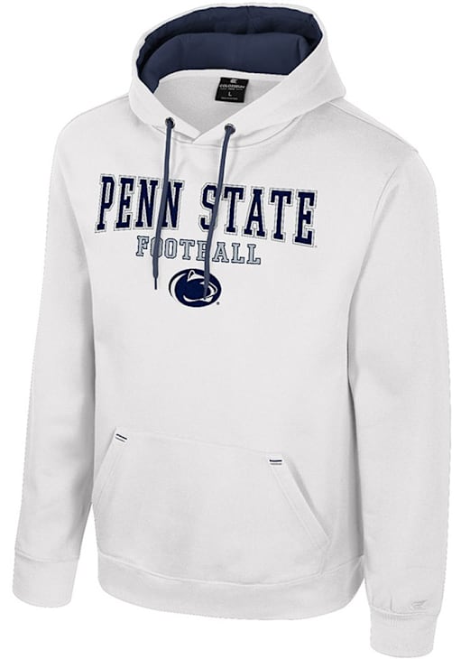 Embrace your Nittany Lions pride and showcase your team spirit with confidence in this Penn State Nittany Lions Long Sleeve Hoodie! Stay warm and stylish with the Penn State Mens White Charlie Hooded Sweatshirt. Designed with embroidered logo and wordmark on center chest, this Nittany Lions Long Sleeve Hoodie is a must-have for dedicated fans.