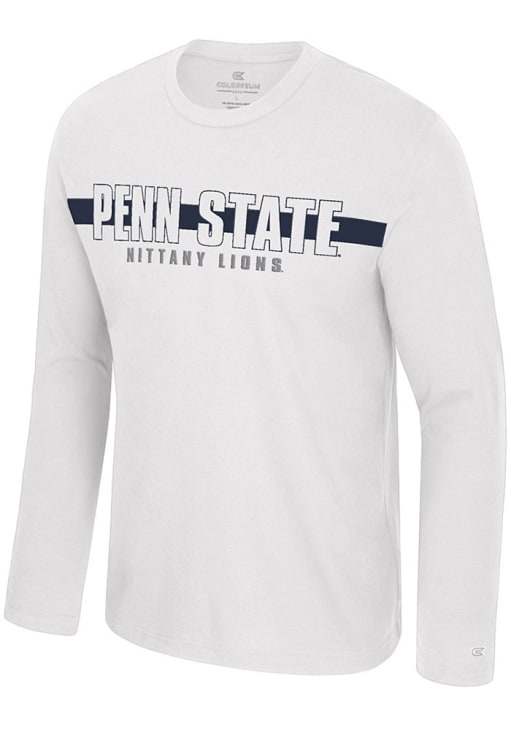 Make a bold statement in this Penn State Nittany Lions White Bar Long Sleeve T-Shirt! This Penn State Long Sleeve Tee features a screen printed wordmark on center chest and logo on back neck. Go Lions!