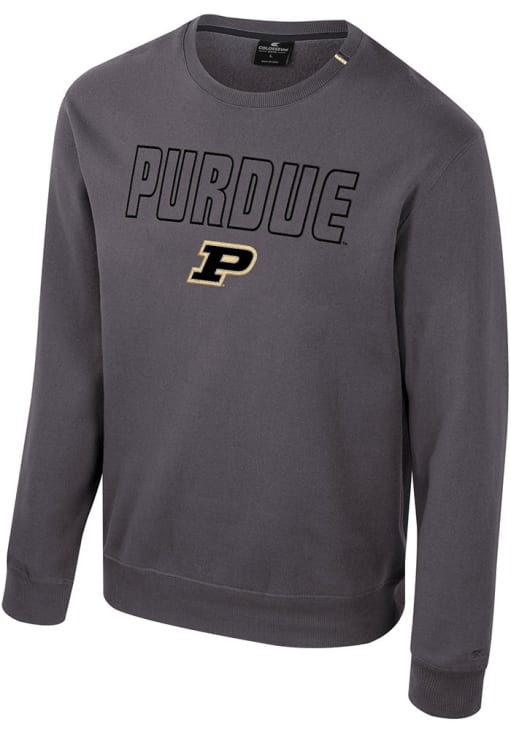 Gear up for the ultimate game day experience with this remarkable Purdue BoilermakersMens Charcoal Zion Crew Sweatshirt! Designed with the true fan in mind, this Boilermakers Long Sleeve Crew Sweatshirt features a team graphic twill applique on front chest. Stay warm and comfortable with this Mens Purdue Boilermakers Crew Sweatshirt.