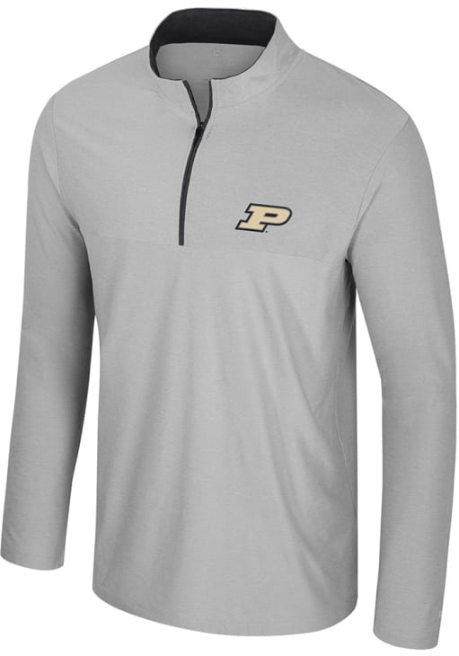 Embrace the warmth and showcase your Boilermakers pride with our Purdue Boilermakers Long Sleeve Qtr Zip Pullover. This Mens Grey Atomic Long Sleeve Pullover offers a screenprint team graphic on left chest for the perfect combination of comfort and style. Elevate your everyday look with this must-have Purdue Boilermakers Long Sleeve Qtr Zip Pullover.