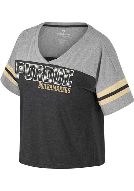 Display your team spirit with this remarkable Purdue Boilermakers Black Treasure Rhinestones Short Sleeve T-Shirt! The Purdue Short Sleeve Tee showcases a screen print team name with small rhinestones on center chest that truly sets it apart. Stand out from the crowd and proudly declare your allegiance to the Boilermakers with this exceptional Black Purdue T-Shirt. Hail Purdue!