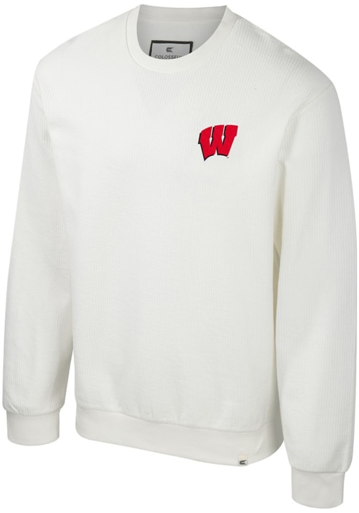 Gear up for the ultimate game day experience with this remarkable Wisconsin BadgersMens White Agent Ribbed Crew Sweatshirt! Designed with the true fan in mind, this Badgers Long Sleeve Crew Sweatshirt features a team logo embroidered with satin stitch on left chest. Stay warm and comfortable with this Mens Wisconsin Badgers Crew Sweatshirt.