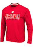 Make a bold statement in this Wisconsin Badgers Red Luge Perf Long Sleeve T-Shirt! This Wisconsin Long Sleeve Tee features a rubberized print of Wisconsin logo and mascot across chest. Go Badgers!