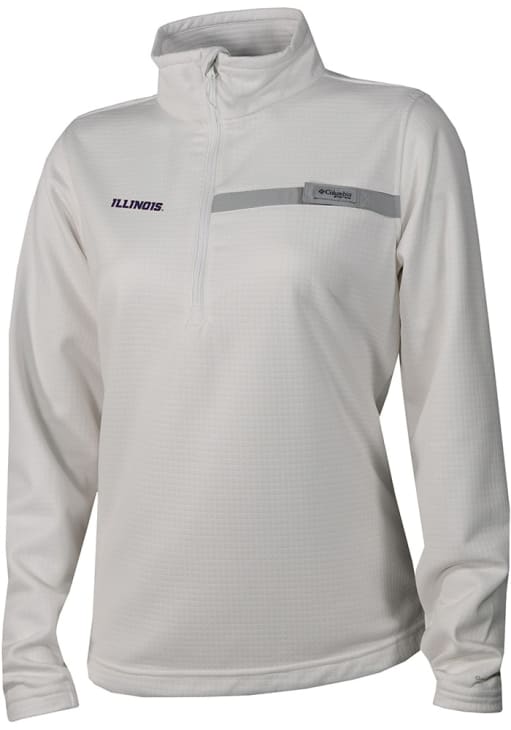 Embrace the warmth and showcase your Fighting Illini pride with our Illinois Fighting Illini Long Sleeve Qtr Zip. This Womens White Heat Seal Skiff Guide Fleece Long Sleeve Pullover offers a heat seal team logo for the perfect combination of comfort and style. Elevate your everyday look with this must-have Illinois Fighting Illini Long Sleeve Qtr Zip.
