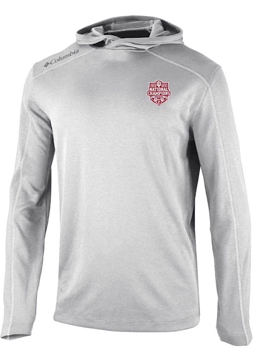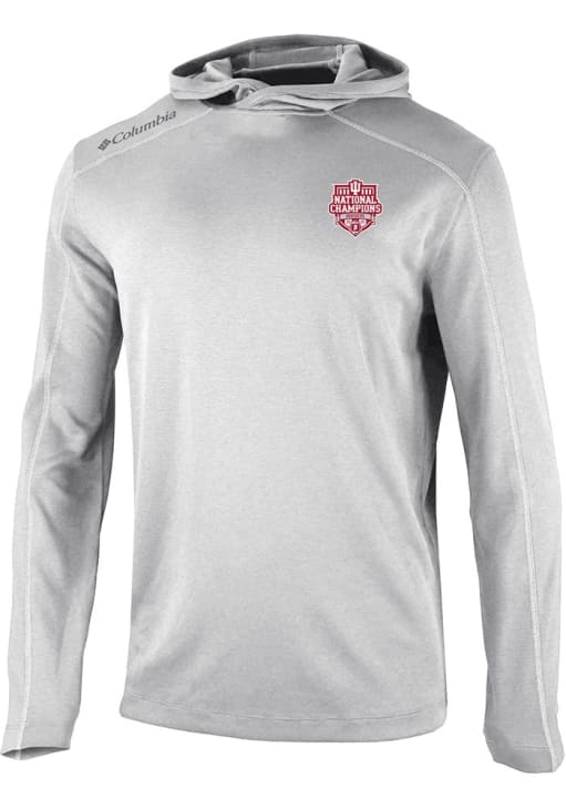 Size Chart for Mens Indiana Hoosiers Crimson Columbia 2025 CFP National Champions Heat Seal Shotgun Long Sleeve H..