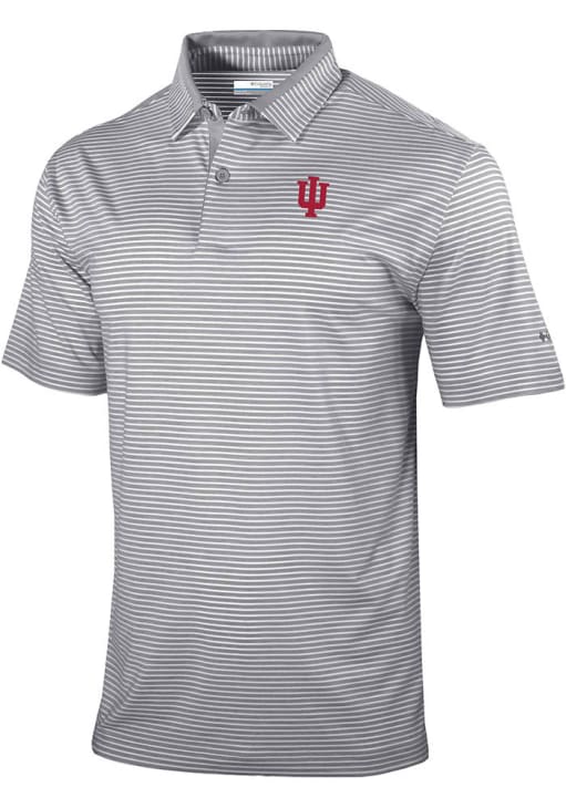 Mens Indiana Hoosiers Grey Columbia Heat Seal Golden Hills Short Sleeve Polo Shirt